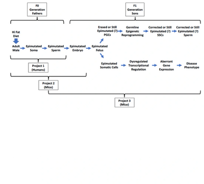 It is focused on investigating mechanisms underlying the sequential series of events that includes transmission of epimutations from the HFD/-Ex F0 sperm to F1 fetus to F1 immature pup to F1 adult to induction of epigenetic disease in F1 offspring. With its overall comprehensive scope, as well as its potential to very productively integrate with Projects 1 & 2, Project 3 will represent an in-depth study, the comprehensive nature of which is unparalleled in the field.